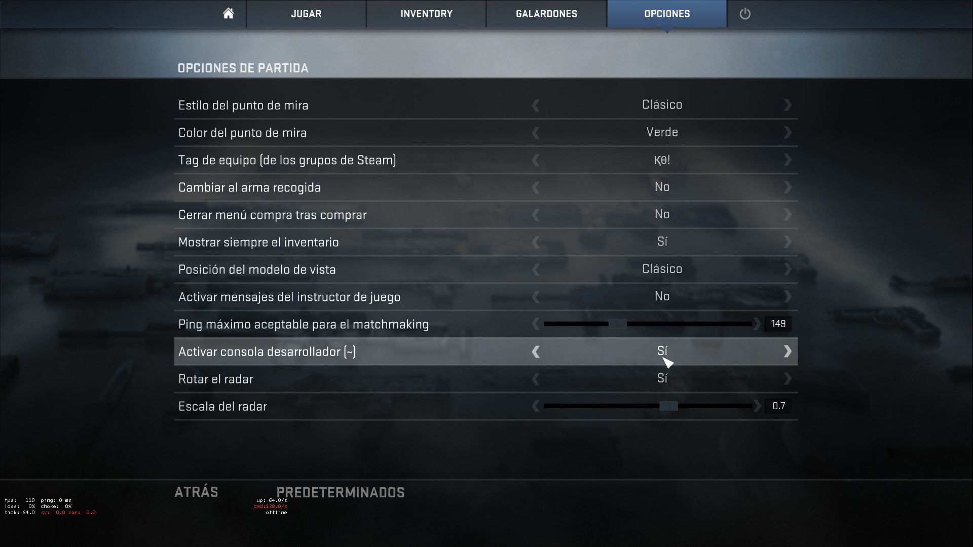 Abrimos el juego y vamos al menu //OPCIONES//OPCIONES DE PARTIDA//ACTIVAR CONSOLA DE DESARROLLADOR// y ponemos la opcion SI