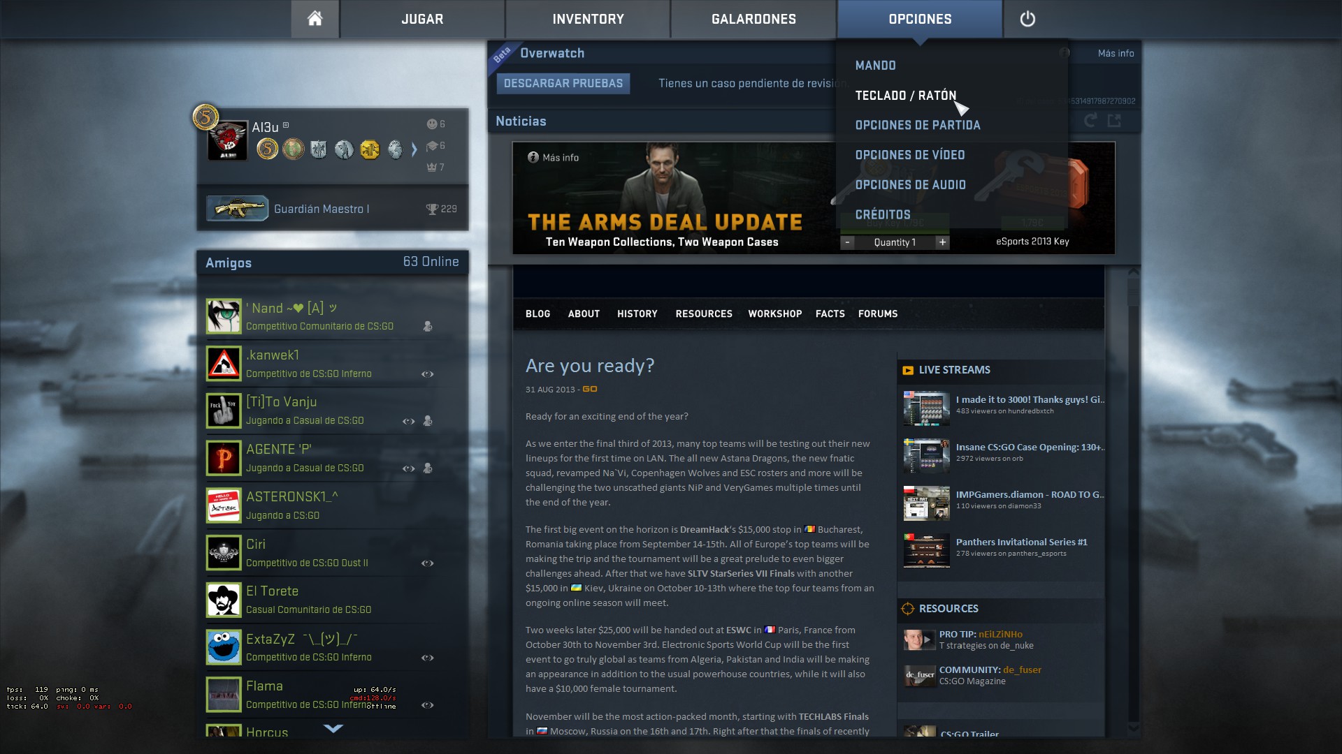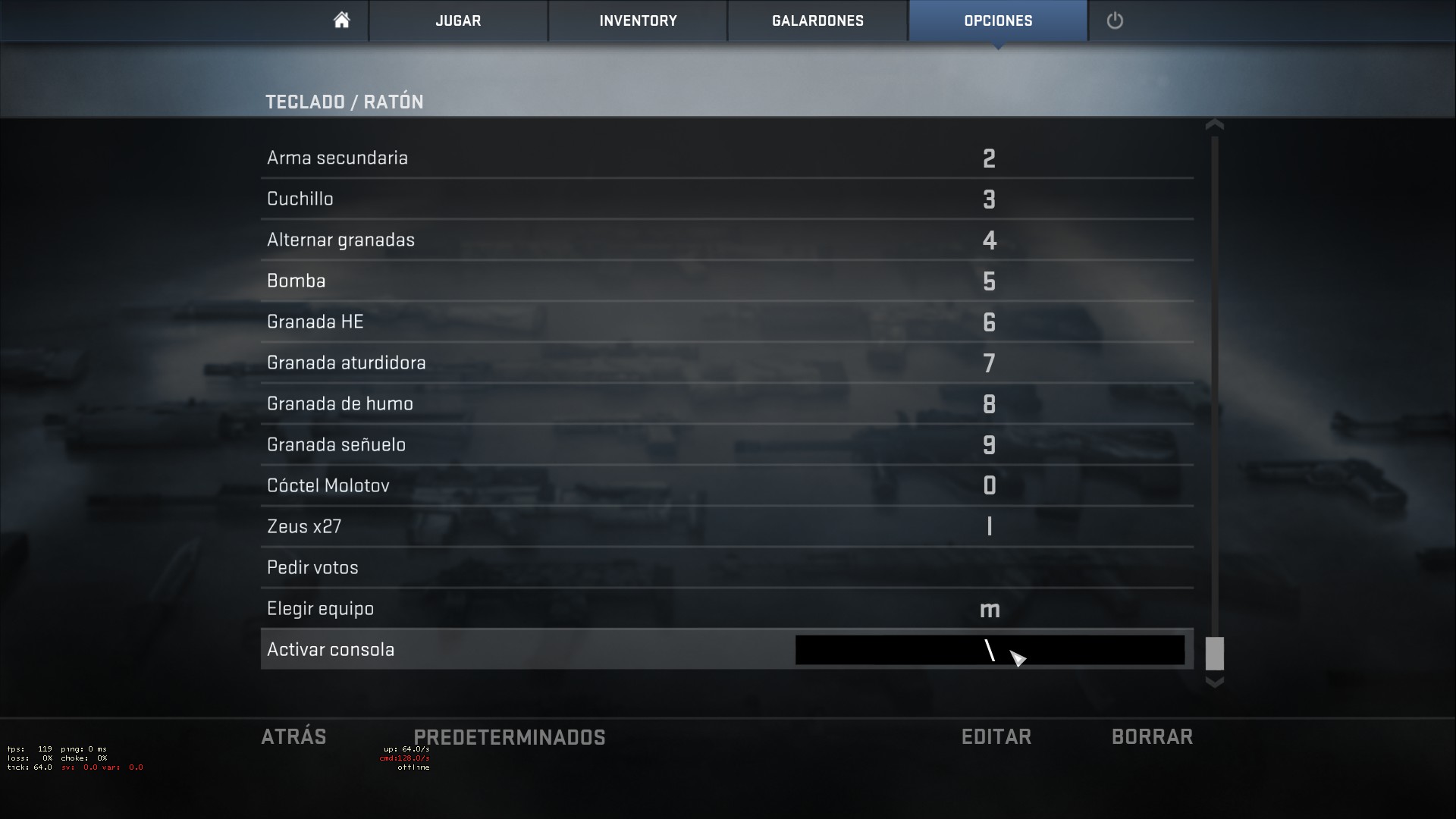 Una vez activada la consola hay que asignar una tecla para ponerla en funcionamiento, para ello vamos a //OPCIONES//TECLADO-RATÓN//ACTIVAR CONSOLA// y asignamos una tecla para abrirla, yo la tengo puesta en el º justo a la izquierda del 1 en cualquier teclado normal.