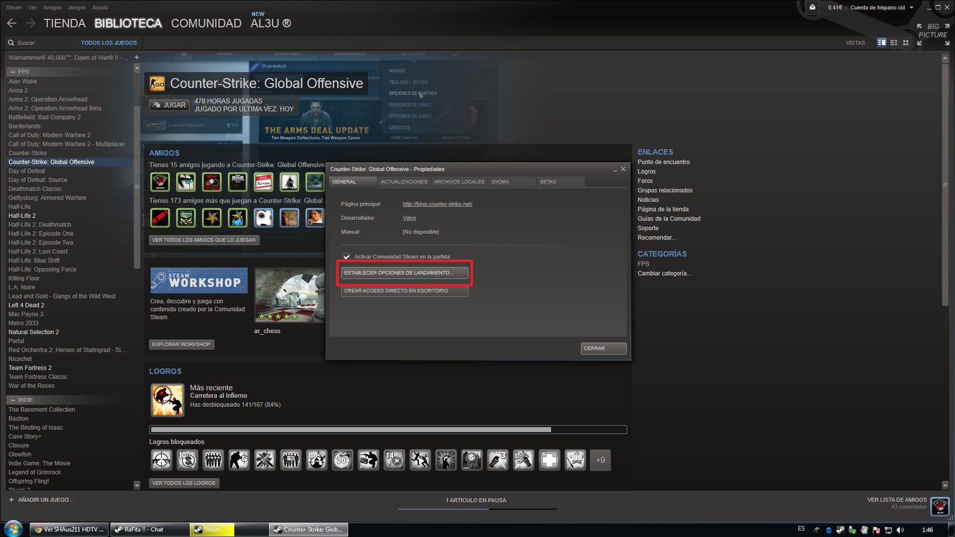 Para poner las opciones de lanzamiento debeis ir a BIBLIOTECA DE STEAM // CLICK DERECHO SOBRE EL JUEGO // PROPIEDADES // ESTABLECER OPCIONES DE LANZAMIENTO